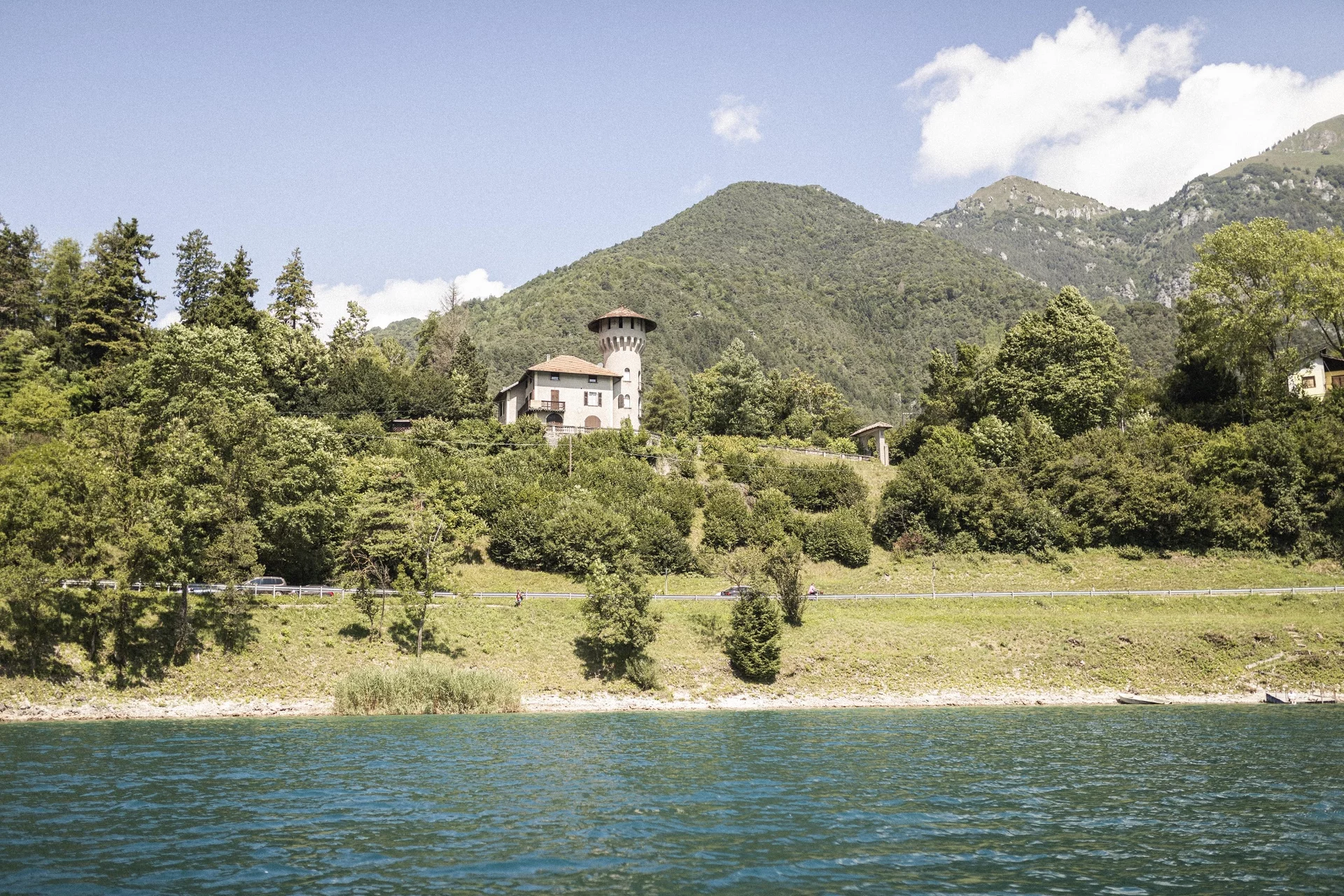 Da qui proseguiamo la discesa lungo Via Dromaé fino al paese di Mezzolago (oppure possiamo svoltare a destra e seguire il percorso 729a. Variante Dromaé). Poco oltre la chiesa, giriamo a sinistra in Via Belvedere, che presto si ricongiunge alla strada principale. Seguiamo la strada principale in direzione Molina per circa 1 km e giriamo a destra presso le Case delle Palafitte, continuando a costeggiare il lago lungo Via al Lago e Via Val Maria fino a Pur. All'incrocio teniamo la destra, passiamo la spiaggia e continuiamo lungo Via Mal Maria. Dopo circa 1 km, a una tornante, prendiamo la pista ciclabile sulla destra, che conduce al circolo velico di Pieve. Da qui proseguiamo lungo Via Alzer e giriamo a sinistra alla prima occasione per ricollegarci alla pista ciclabile. Questa si ricongiunge brevemente a Via Alzer, quindi svolta a sinistra e corre accanto al ruscello per 1 km, dopo di che si ricongiunge a Via Imperiale. Giriamo a destra per tornare al punto di partenza.