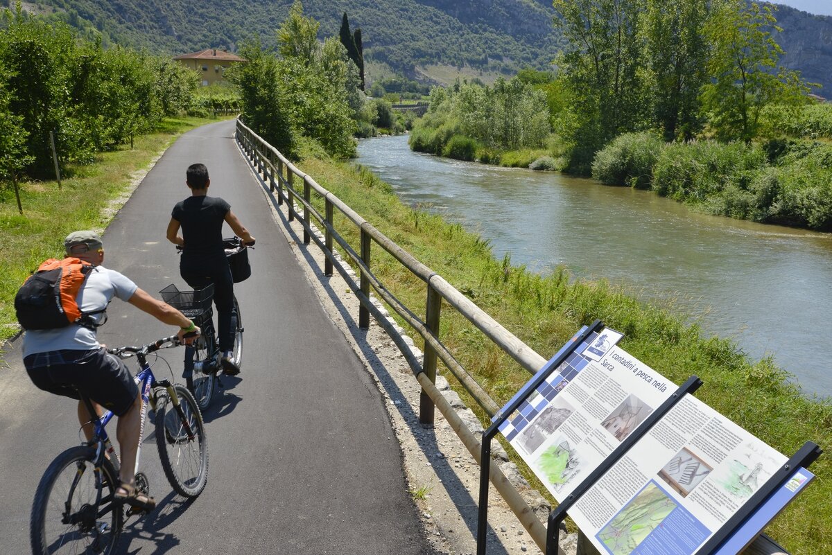 Se ami la natura e ti piace scoprire tutti i tesori nascosti di un territorio, questo è il percorso che fa per te. Le sponde del fiume Sarca fanno parte del Parco Fluviale Sarca e qui troverai pannelli informativi per conoscere la storia e le caratteristiche del luogo. La riserva naturale delle Marocche è un tesoro per gli appassionati di geologia e botanica. Sapevi, ad esempio, che qui crescono bonsai naturali? Scendi dalla bici e fermati a esplorare le “valli della Luna” (Valli della Luna)!
