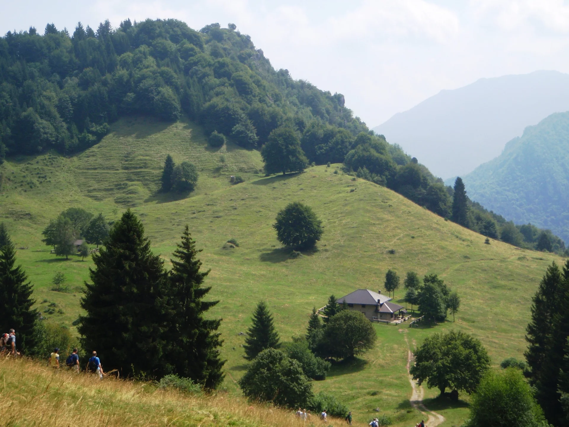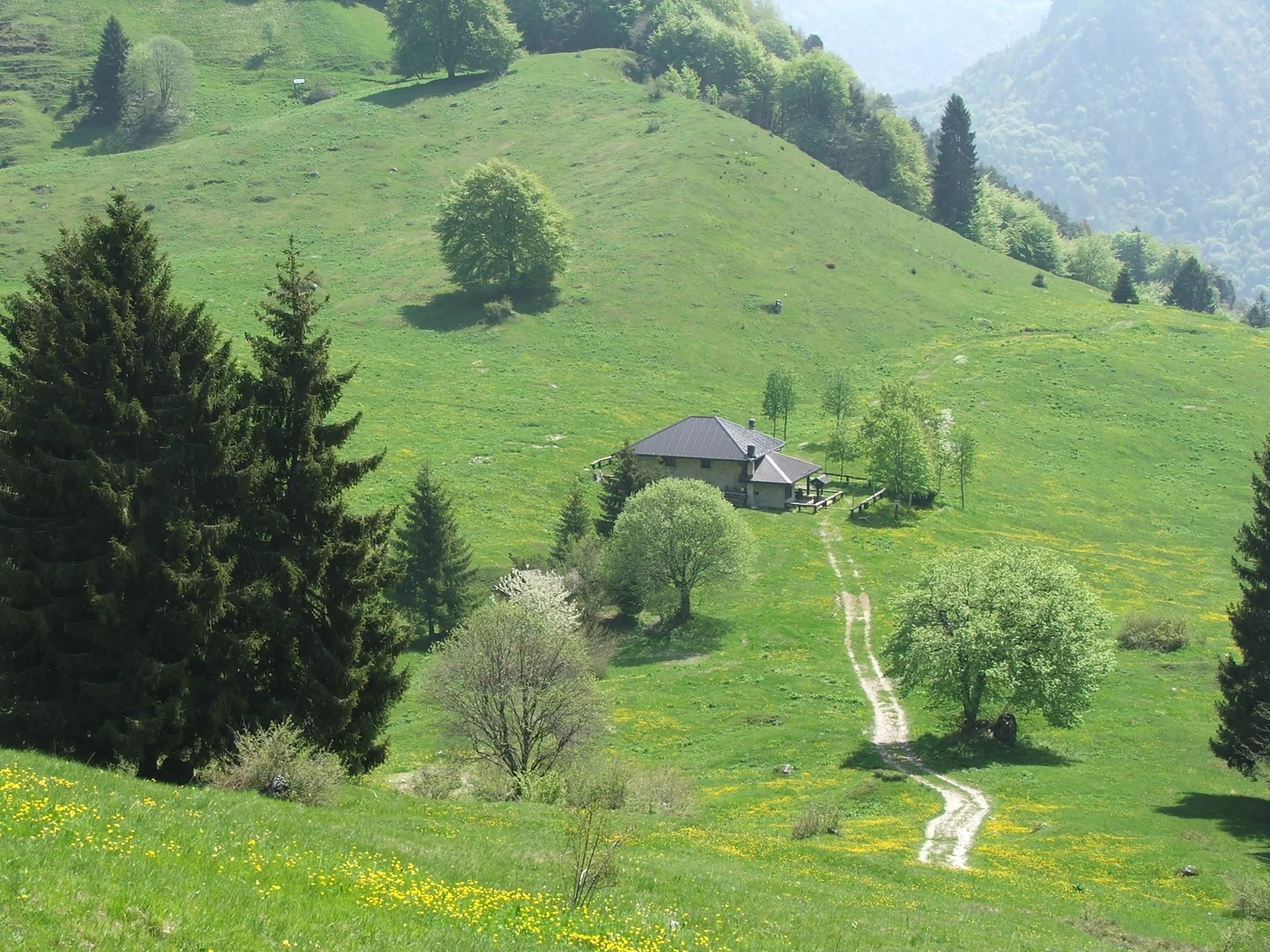 Dalla pineta di Pur si sale nel bosco verso i pascoli di Malga Giù e Ca’ de Mez, sopra Molina. Si scende verso Pieve passando dalla chiesetta di San Martino, un antico eremo da cui si gode di un bellissimo panorama sul Lago di Ledro e la Val Concei.