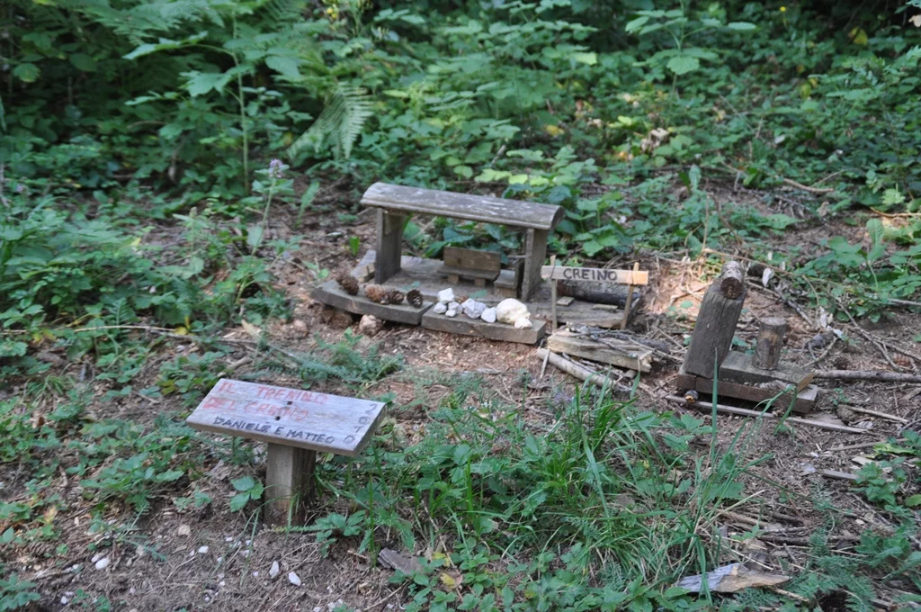 Da Santa Barbara, sopra la Val di Gresta, prendi la strada sterrata proprio davanti alla fontana (cartello con mappa escursionistica), per un percorso pianeggiante attraverso vaste coltivazioni. Dopo circa 500 mt. un incrocio a sinistra ti porterà nel bosco, mentre ai lati della strada incontrerai le numerose installazioni naturali di “arte ambientale” realizzate dagli studenti delle scuole elementari della valle.