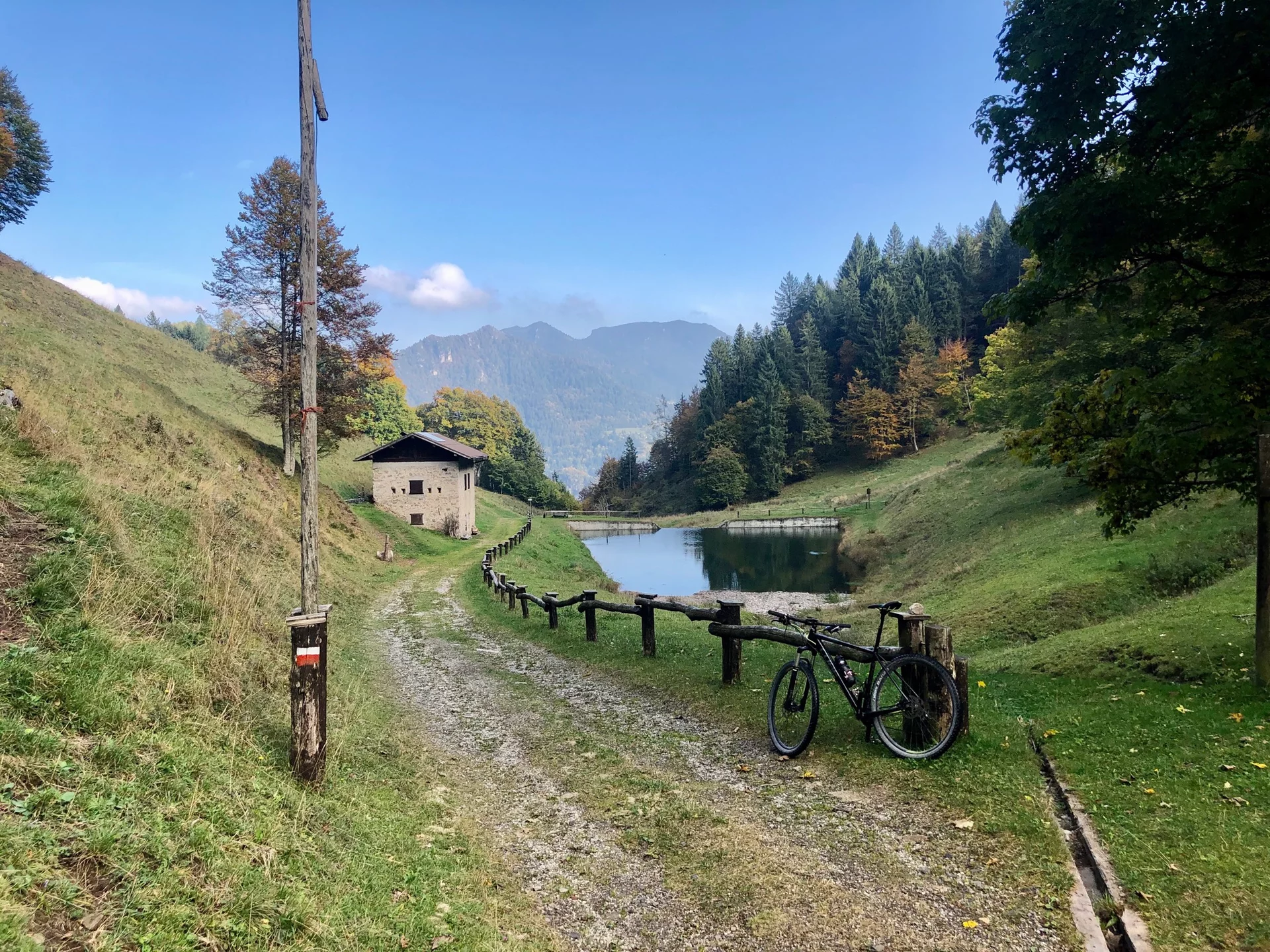Questo percorso alterna lunghi tratti di pista ciclabile e strade forestali e si sviluppa principalmente lungo il fondovalle e sotto la linea della foresta, senza raggiungere altitudini elevate. Il notevole dislivello è dovuto alla doppia salita, prima dalla Valle di Ledro a Stigolo e poi dalla Valle del Chiese a Passo Giovo.