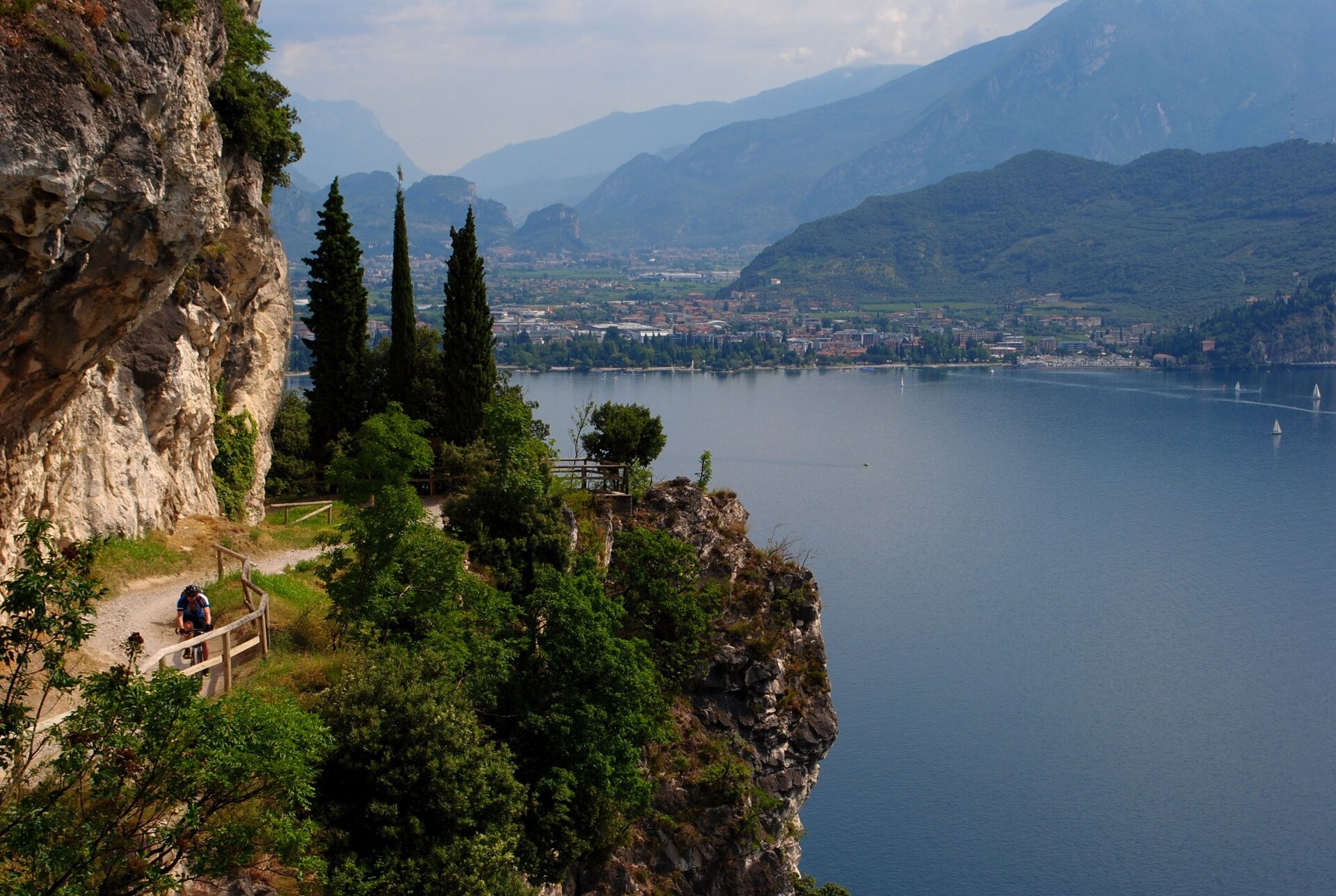 Il massiccio della Rocchetta forma uno sfondo imponente sulla sponda destra del Lago di Garda. Ripide pareti rocciose si innalzano dal livello dell’acqua fino a oltre 1000 metri, conferendo al Garda Trentino l’aspetto di un fiordo nordico. Questo percorso permette di esplorare la base della parete rocciosa fino a Punta Sperone, una sporgenza rocciosa che si protende nel lago e nasconde uno dei più antichi forti del vecchio sistema difensivo austro-ungarico. Il Garda Trentino rappresentava il confine più a sud dell’impero ed era sorvegliato come posizione strategica importante. Proprio sopra il lago, si può distinguere il Sentiero del Ponale che si snoda sulla parete rocciosa, punteggiato qua e là da appassionati di bici e trekking.