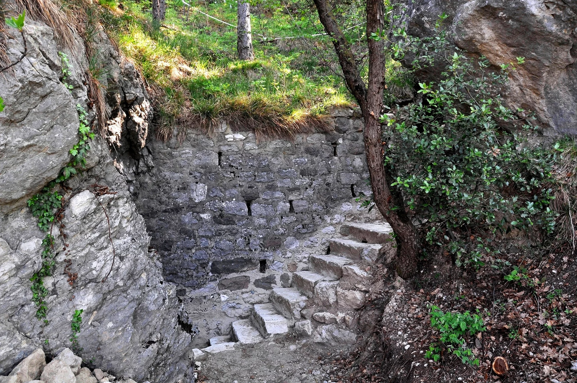 Questa collina “fortificata” si trova a nord della città di Nago ed è sede di numerosi reperti risalenti alla Prima Guerra Mondiale. Lungo il percorso potrai vedere trincee, osservatori e postazioni una volta usate per controllare i pendii del Monte Altissimo. Questa zona si trovava direttamente sul percorso delle truppe nemiche che avanzavano da Loppio o Torbole sperando di salire sul Monte Corno per aggirare la difesa a Riva e raggiungere direttamente Arco. Queste postazioni facevano parte di un sistema fortificato più ampio costruito per aiutare a difendere il territorio tra Riva del Garda e Loppio.
