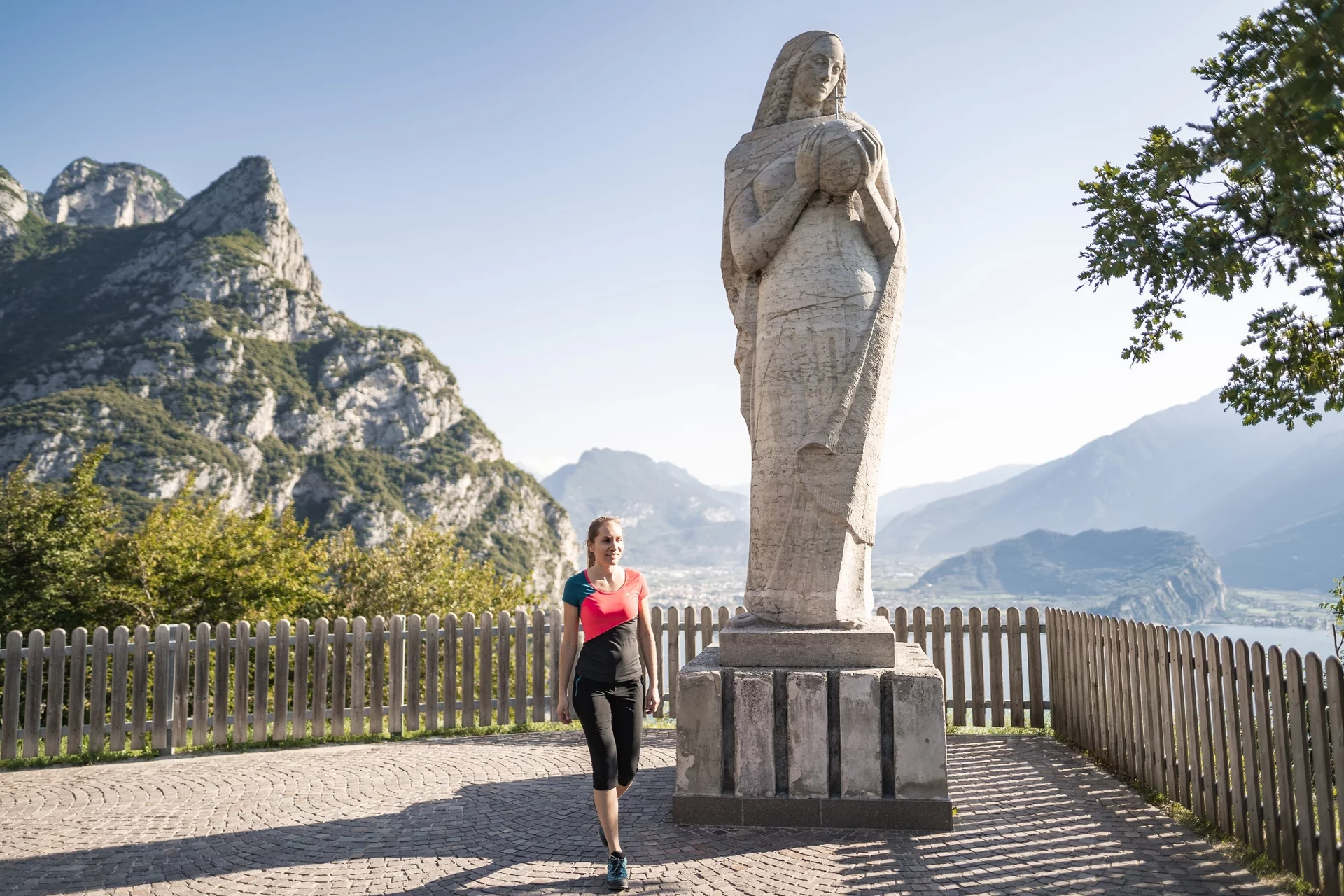 Salendo verso Pregasina vale la pena fermarsi alla statua della regina mundi, che è un bellissimo punto panoramico sul lago.
