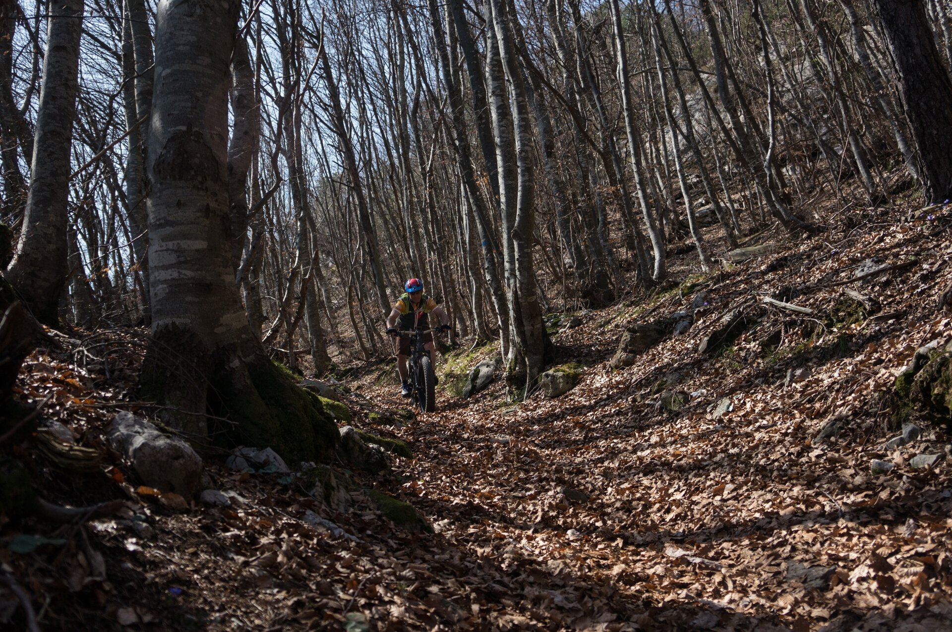 Il fondo cambia spesso: da asfalto, a cemento, a strade forestali con fondo sterrato stabile, smosso, single track... Di tutto un po'.