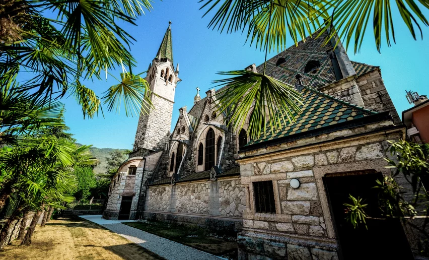 Quando torni alla fontana, attraversa i giardini pubblici fino alla chiesa parrocchiale di Arco, nota come la Collegiata. Lasciando la chiesa sulla sinistra, gira intorno al retro e sulla destra incontrerai Palazzo Marchetti (famoso per i suoi comignoli veneziani) e il Municipio. In piazza 3 Novembre, assicurati di osservare la fontana “del Mosè” e, di fronte alla chiesa, Palazzo Marcabruni-Giuliani. Lascia questo edificio sulla destra e imbocca via Vergolano: sul lato destro della strada puoi vedere l'edificio storico Palazzo del Termine o delle Lega. Prosegui dritto fino all'incrocio con via Fossa Granda, che segui a sinistra salendo fino all'arboreto (Parco Arciducale). Per continuare, entra nel centro storico di Arco dal varco di Stranfora, di fronte all'ingresso del parco.