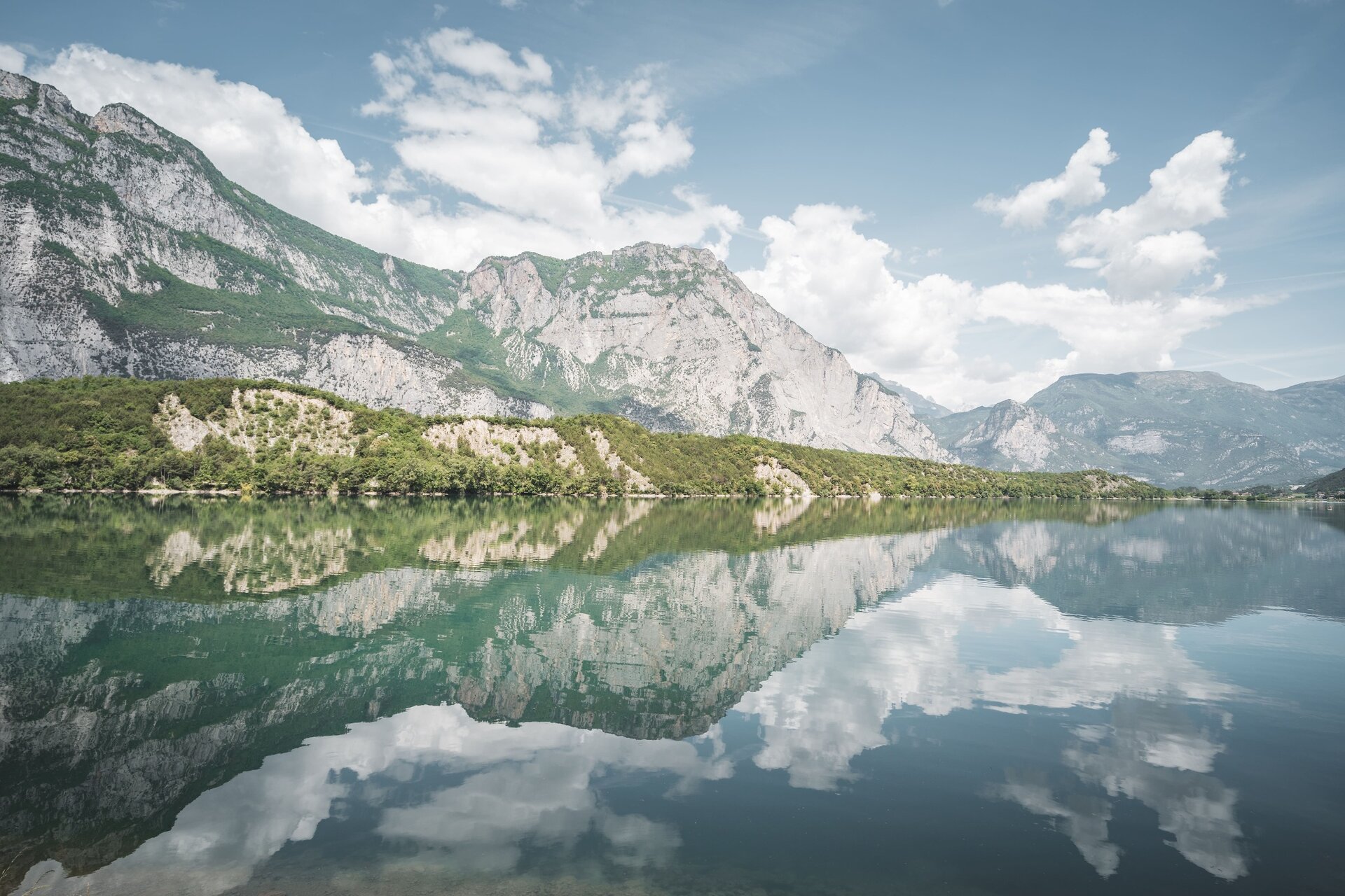 I prati e le spiagge sulla riva del lago di Cavedine sono ideali per una sosta.