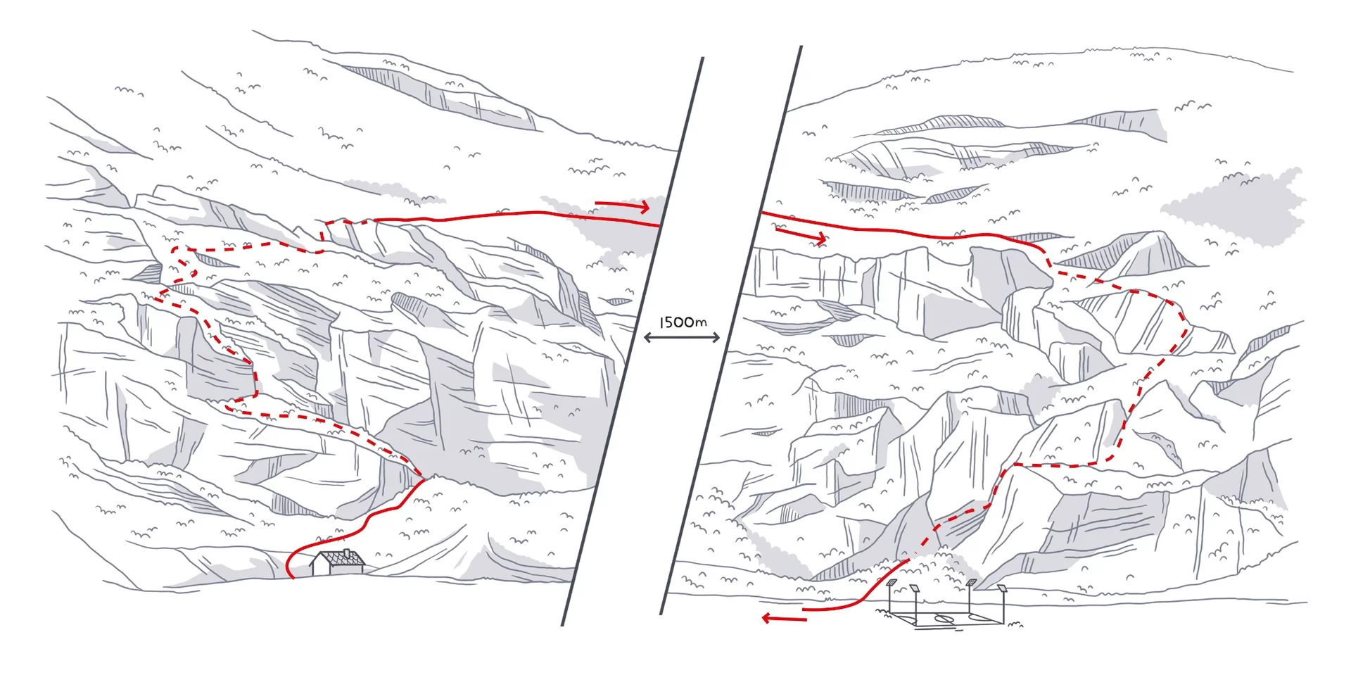 I portali di sostegno, le Cavre, delle teleferiche hanno dato il nome ad uno dei due percorsi. Mentre l’altro prende il nome dagli “Scaloni” realizzati per agevolare la risalita nei tratti più ostici.