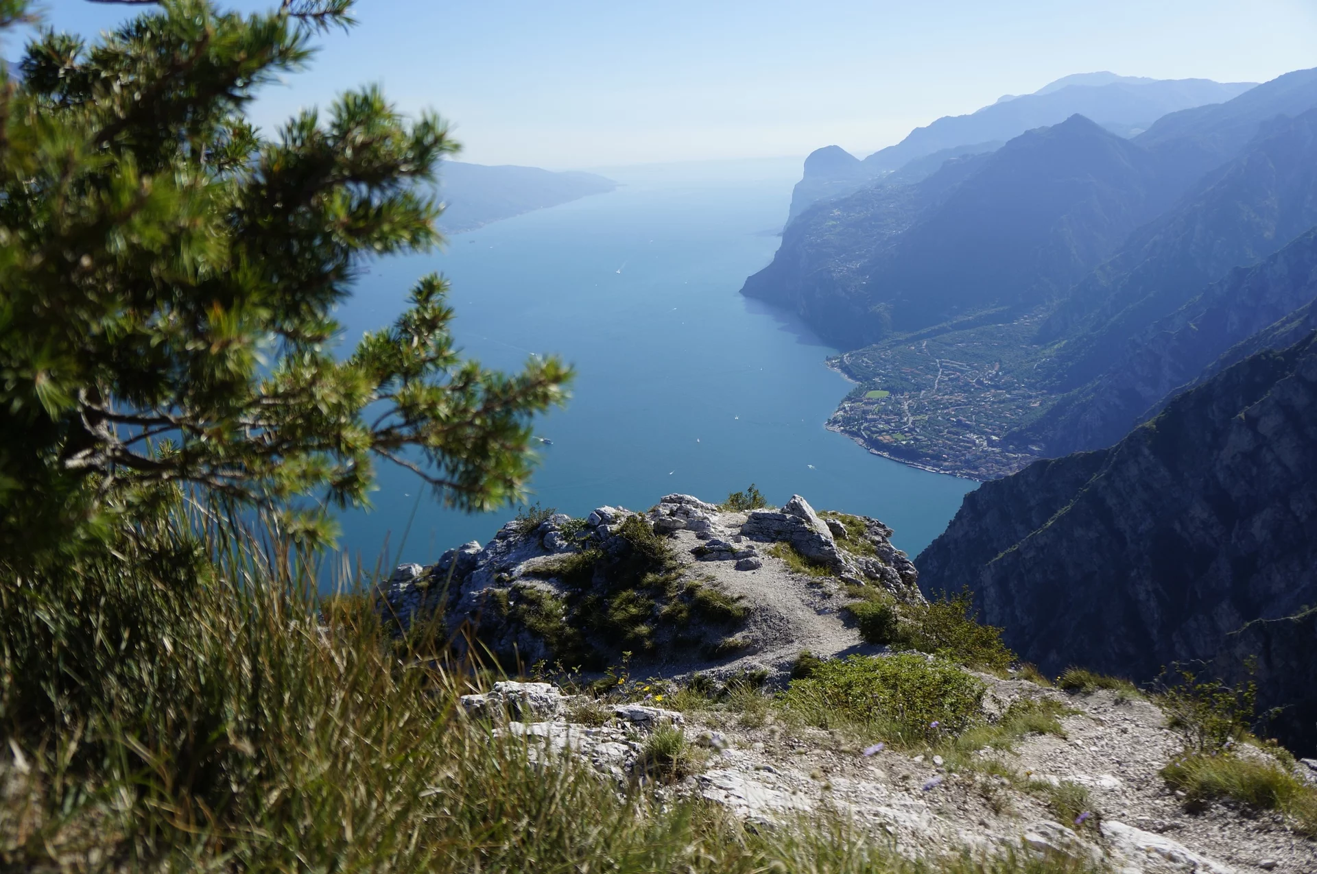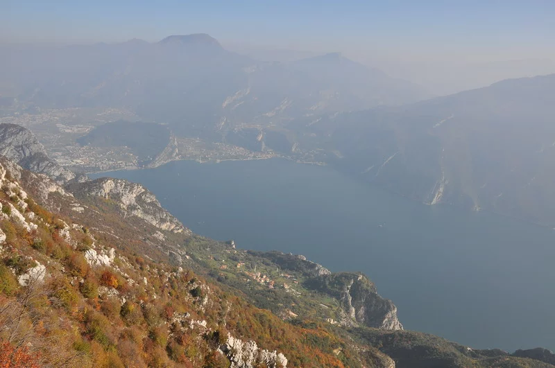 Trekking lungo le creste che sovrastano Pregasina con vista sui Laghi di Garda e Ledro.