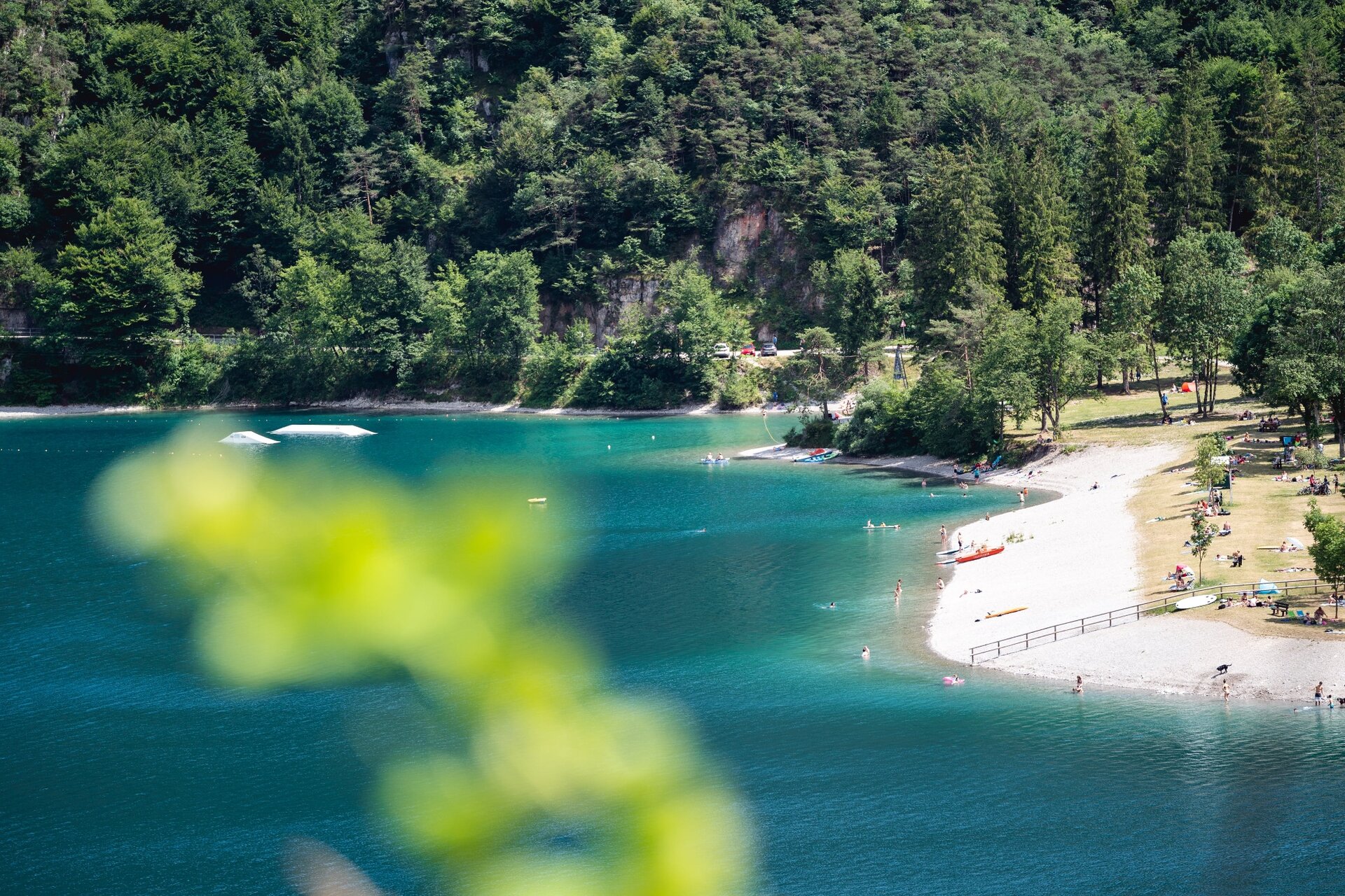 Giunti al lago, prendiamo a sinistra e continuiamo a costeggiarlo, dapprima su Via al Lago e poi su Via Val Maria, fino a Pur. Al bivio teniamo la destra, superiamo la spiaggia e proseguiamo su Via Mal Maria. Dopo circa 1 km, in corrispondenza di un tornante, imbocchiamo la pista ciclabile sulla destra, che porta fino al circolo velico di Pieve. Da qui proseguiamo su Via Alzer e alla prima occasione svoltiamo a sinistra per riprendere la ciclabile. Questa si ricongiunge per un breve tratto con Via Alzer per girare poi a sinistra e costeggiare il torrente per 1 km, dopodiché si ricongiunge con Via Imperiale. Svoltiamo a destra per ritornare al punto di partenza.