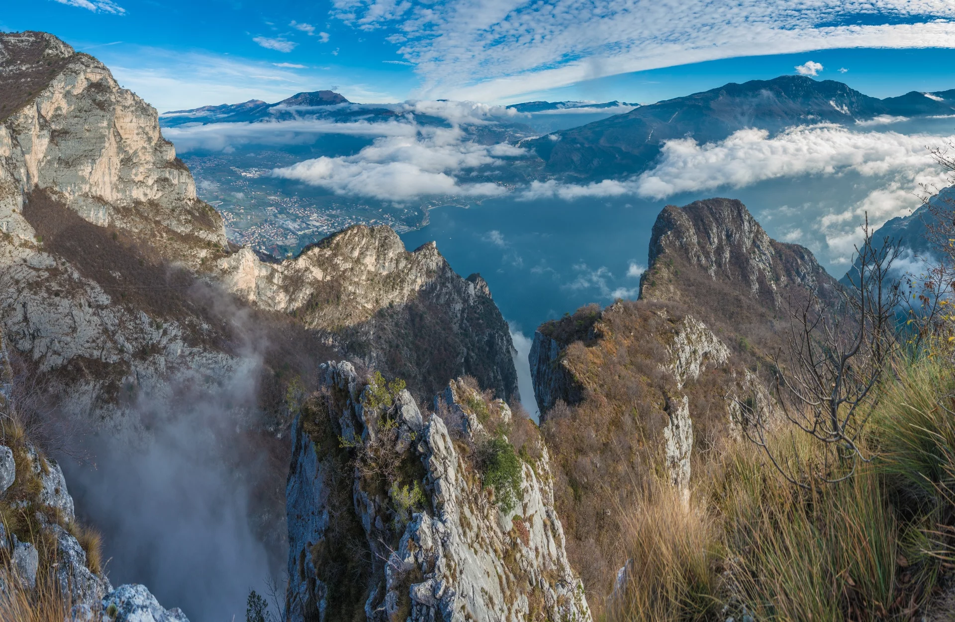 La vista da Cima Rocca spazia dal Lago di Garda alle cime orientali della Valle di Ledro.