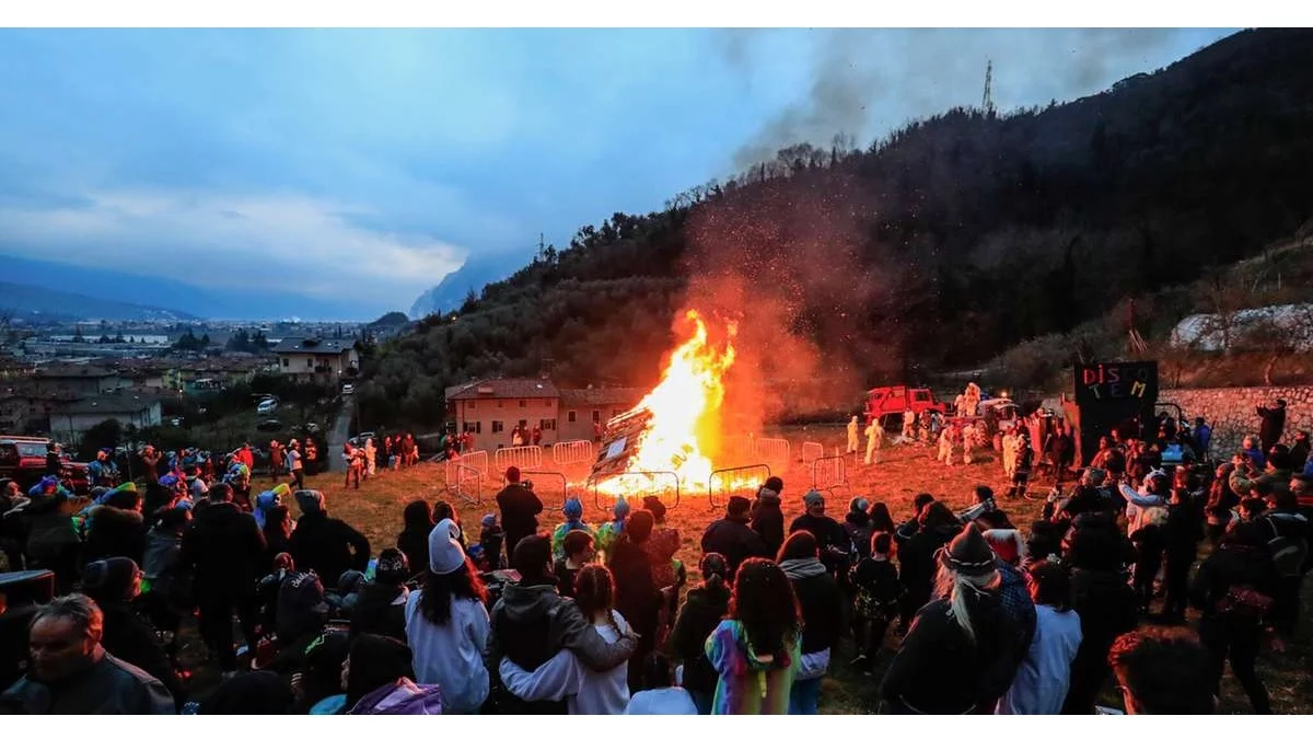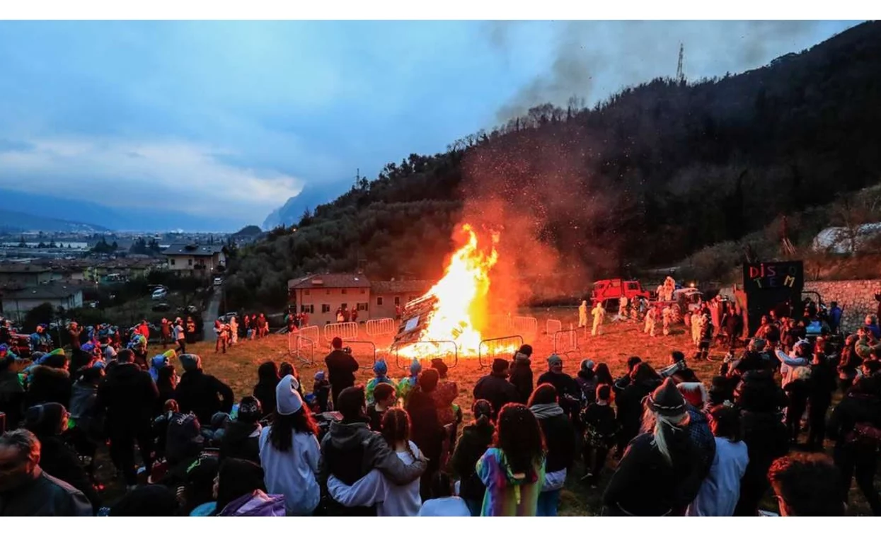 h. 18.00 - Arrivo del corteo nella collina sovrastante il paese, con solenne bruciatura dei carnevali accompagnata da musica e canti, e nel frattempo distribuzione gratuita a tutti i presenti dei tradizionali grostoi, dolci tipici locali con vin brulè o Tè caldo.