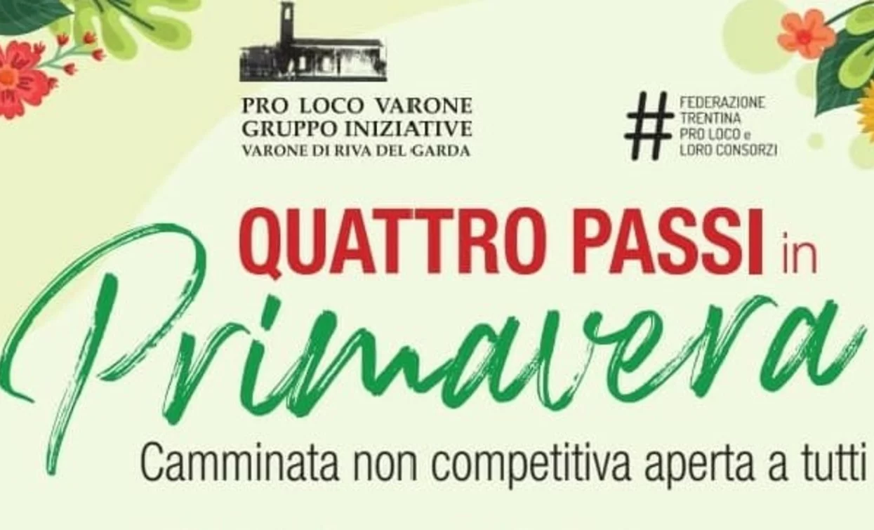 Quattro passi in primavera è la passeggiata organizzata per celebrare l’inizio della bella stagione con una giornata all’aria aperta all’insegna del movimento e della convivialità. L’evento si svolge al Parco del Pernone, a Varone di Riva del Garda, con partenza libera dalle 9.00 alle 10.00.