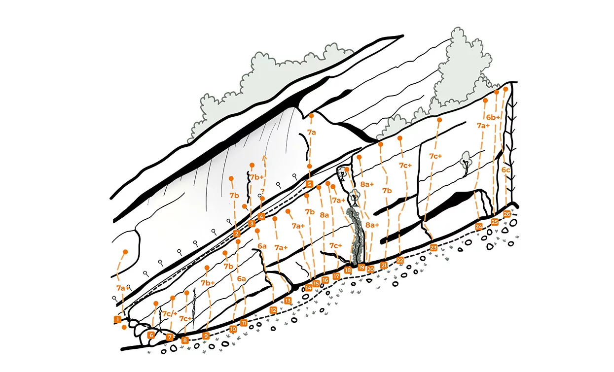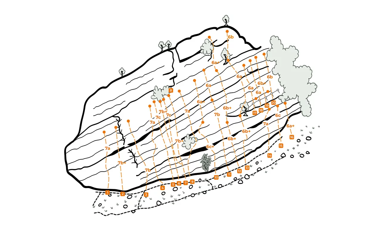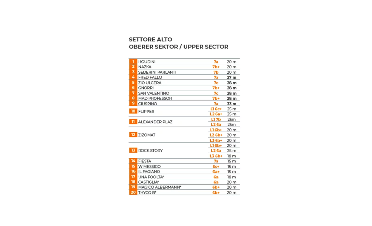 Ampia parete di roccia che prevede tre settori con ben 85 vie; è possibile scalare tutto l'anno grazie all'esposizione a meridione della falesia facilmente raggiungibile da un sentiero che parte direttamente dal parcheggio nei pressi della Chiesa di San Siro.