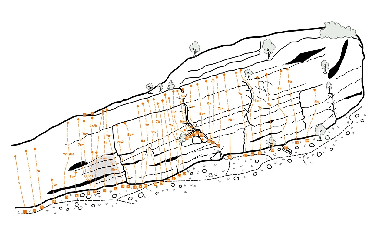 Dal parcheggio nei pressi della falesia seguire il sentiero sterrato per circa 5 minuti.