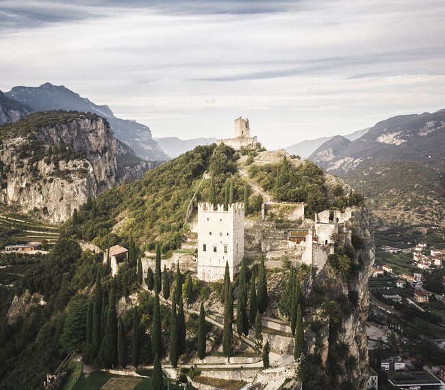 Arroccato in cima ad un’altura, da secoli l’imponente castello sorveglia la città di Arco. Ai suoi piedi il centro storico si avvolge a semicerchio intorno alle pendici della collina. Che il nome Arco sia solo una coincidenza?