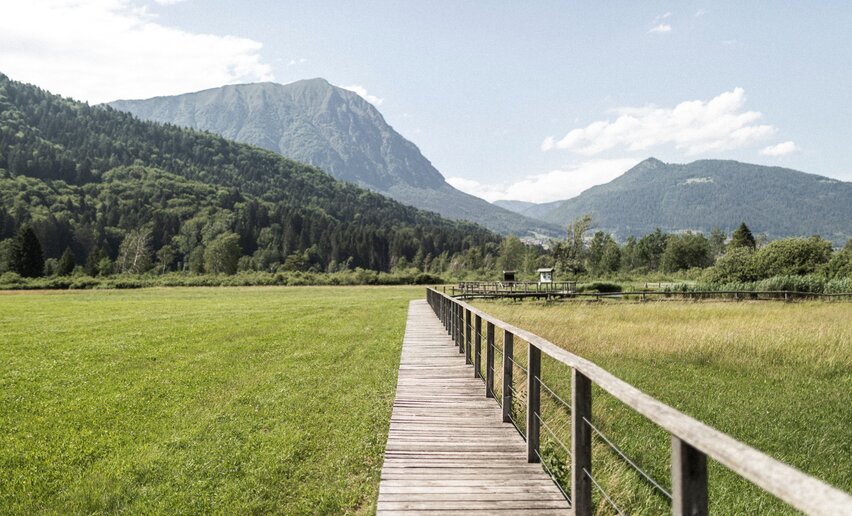 Da Ponte Arche raggiungi Fiavé con l’autobus: ci vogliono circa 15 minuti. In paese puoi visitare il Museo delle Palafitte e poi, seguendo il comodo sentiero (20 minuti), scoprire com’erano davvero le abitazioni dell’Età del Bronzo nel Parco Archeo Natura.